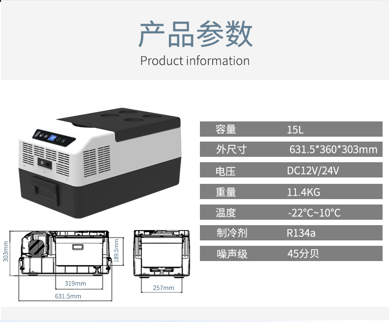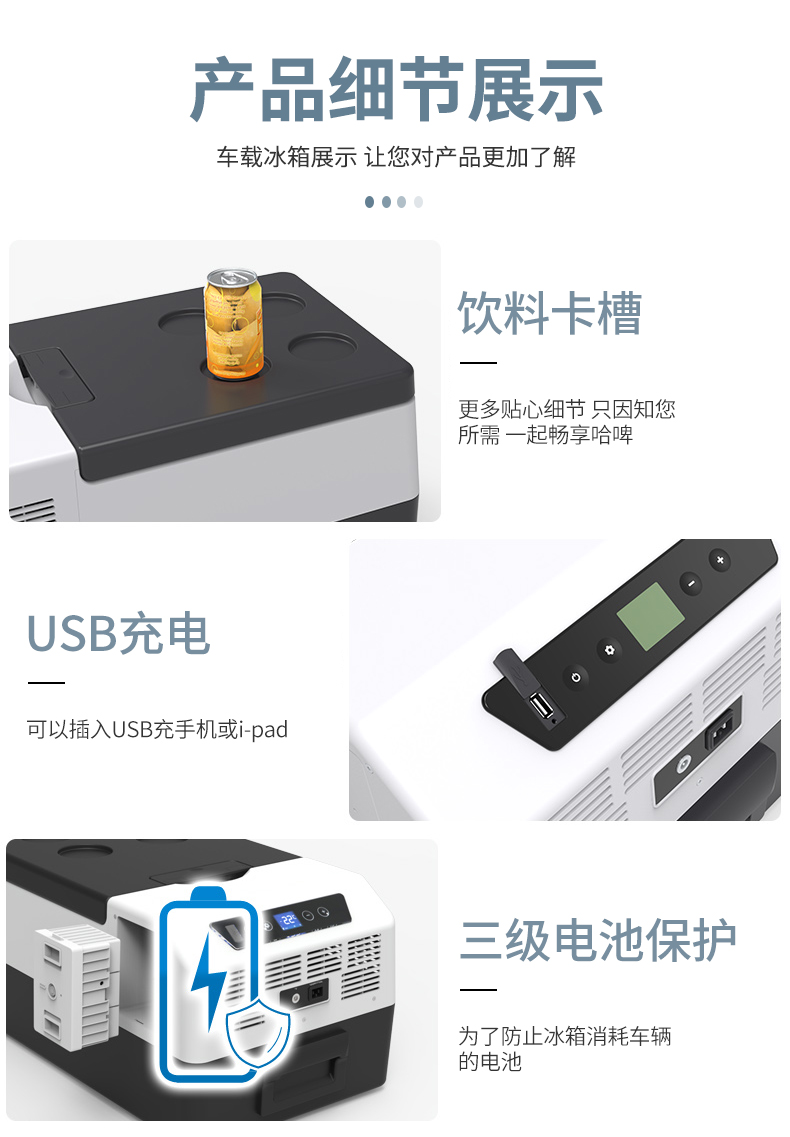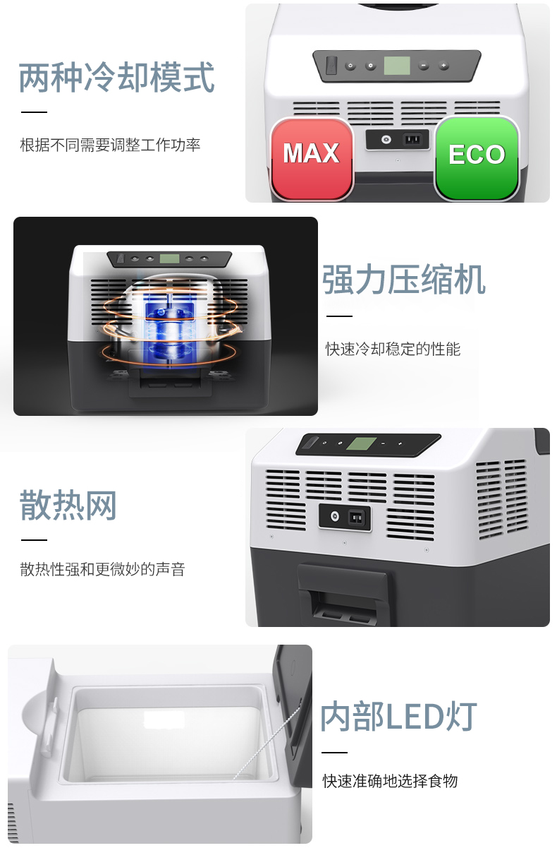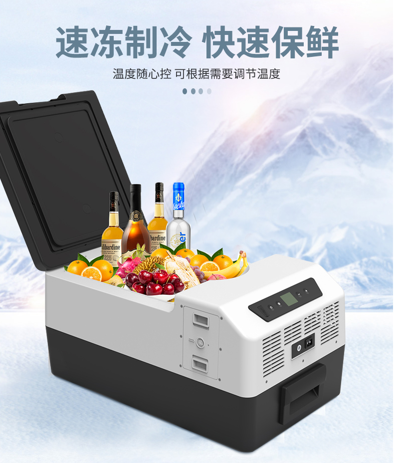 【容量】15L小尺寸但是容量设计合理,可支持2-3人户外食物存储。【设计】冰箱采用顶开设计,减少空调损耗,有利于节能。【内置电池】冰箱内置锂电池,断电后可随时为冰箱供电。【高品质压缩机】采用压缩机冷却技术,快速冷却至-22℃~+10℃,运行安静。