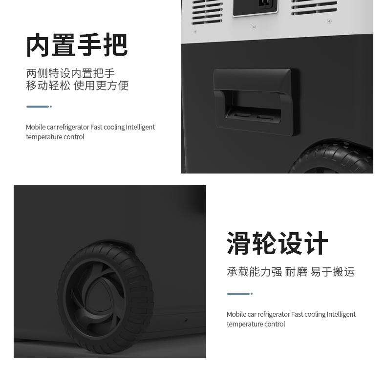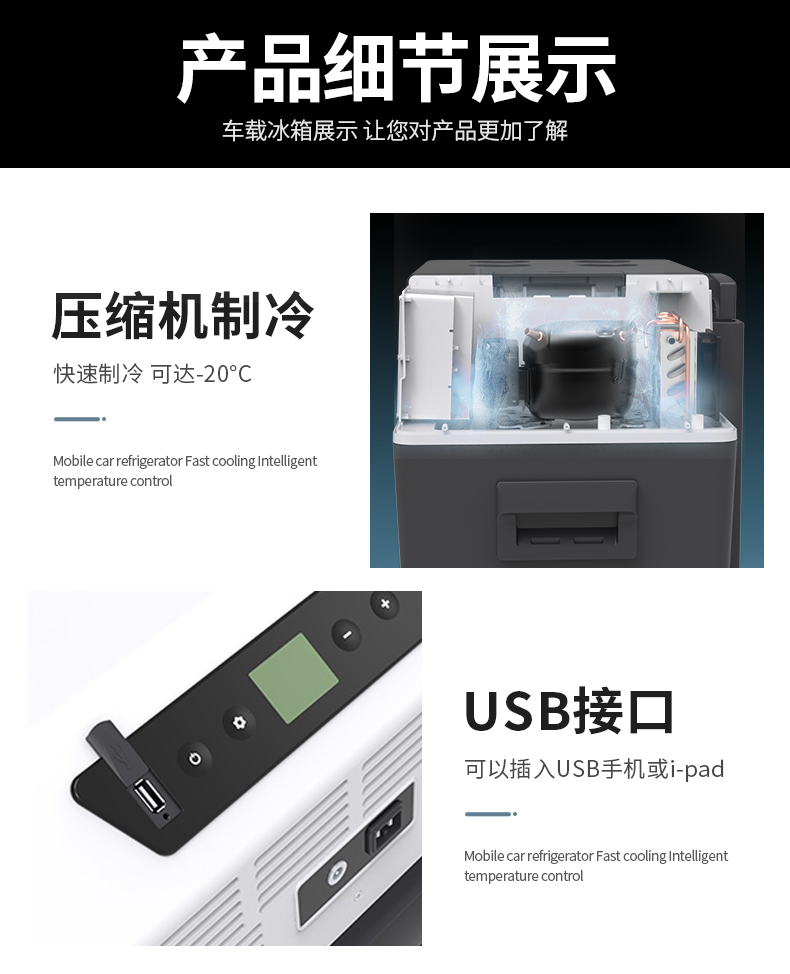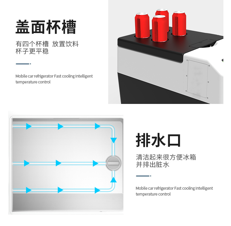 【智能控温】车载冰箱温度可通过蓝牙或数字屏上的按键控制。你可以通过手机上的蓝牙监控冰箱的温度。