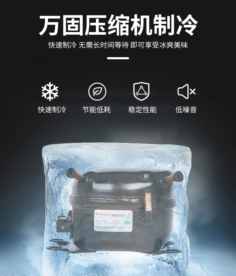【压缩机冰箱】采用压缩机冷却技术,快速冷却至-22℃~+10℃,运行安静。