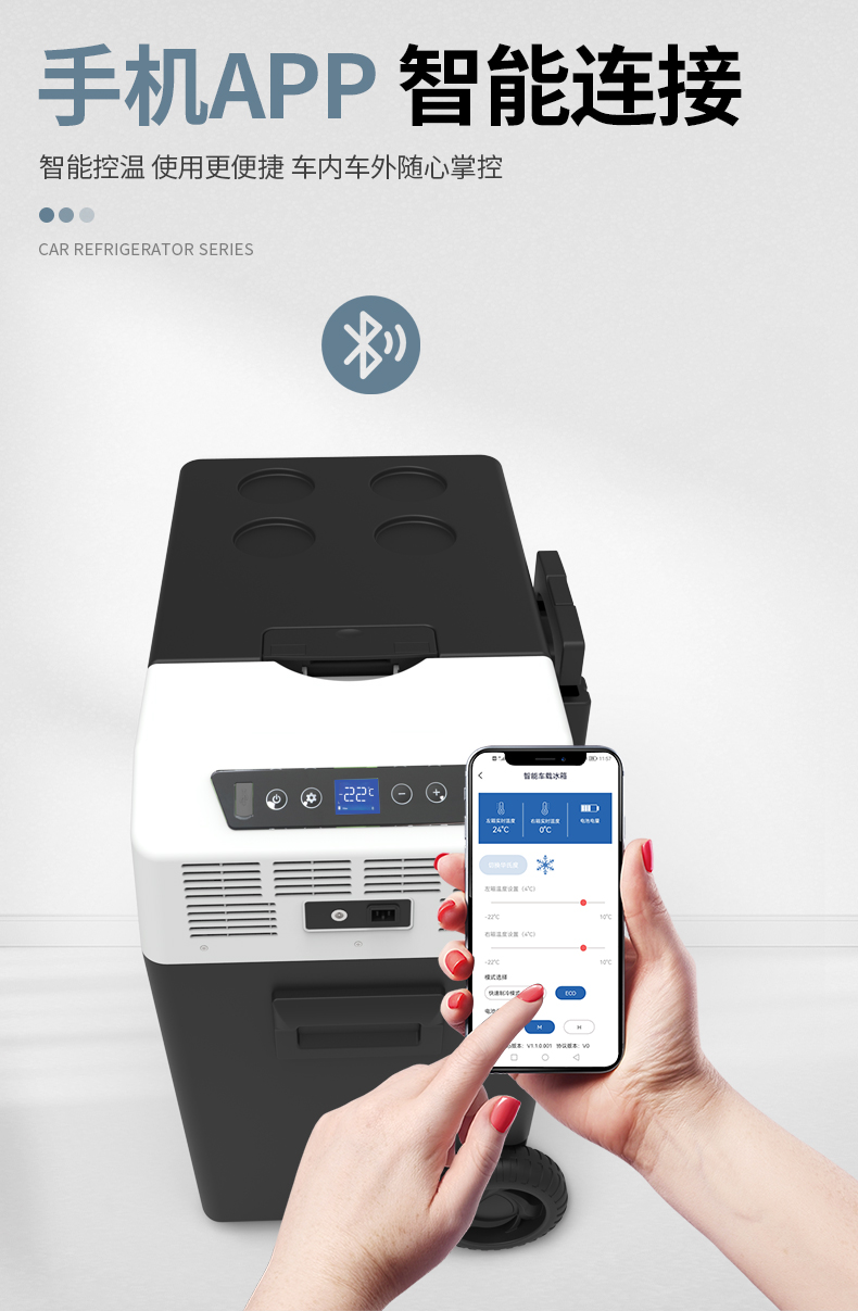 【智能温度控制】您可以通过蓝牙或数字触摸屏上的按钮控制和监测温度。